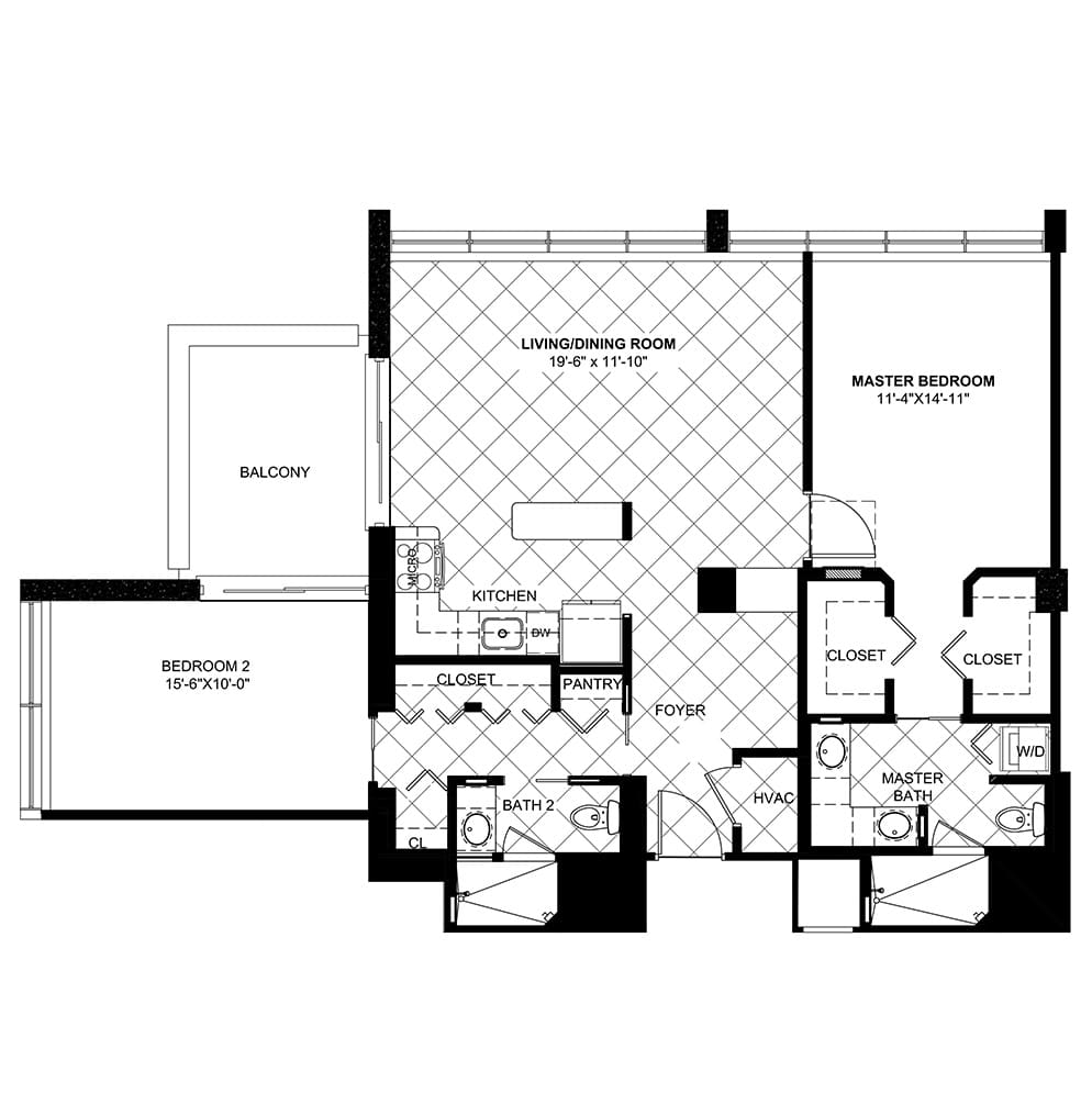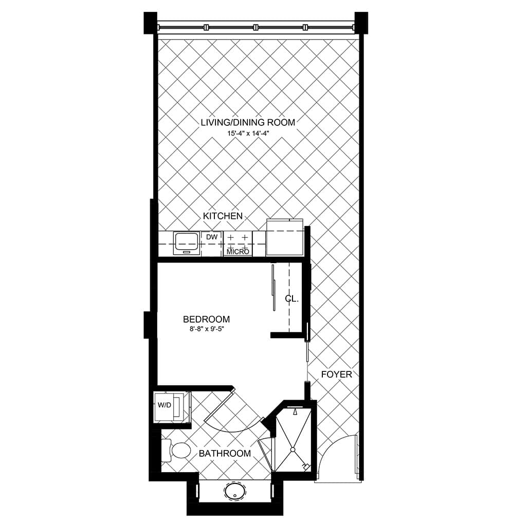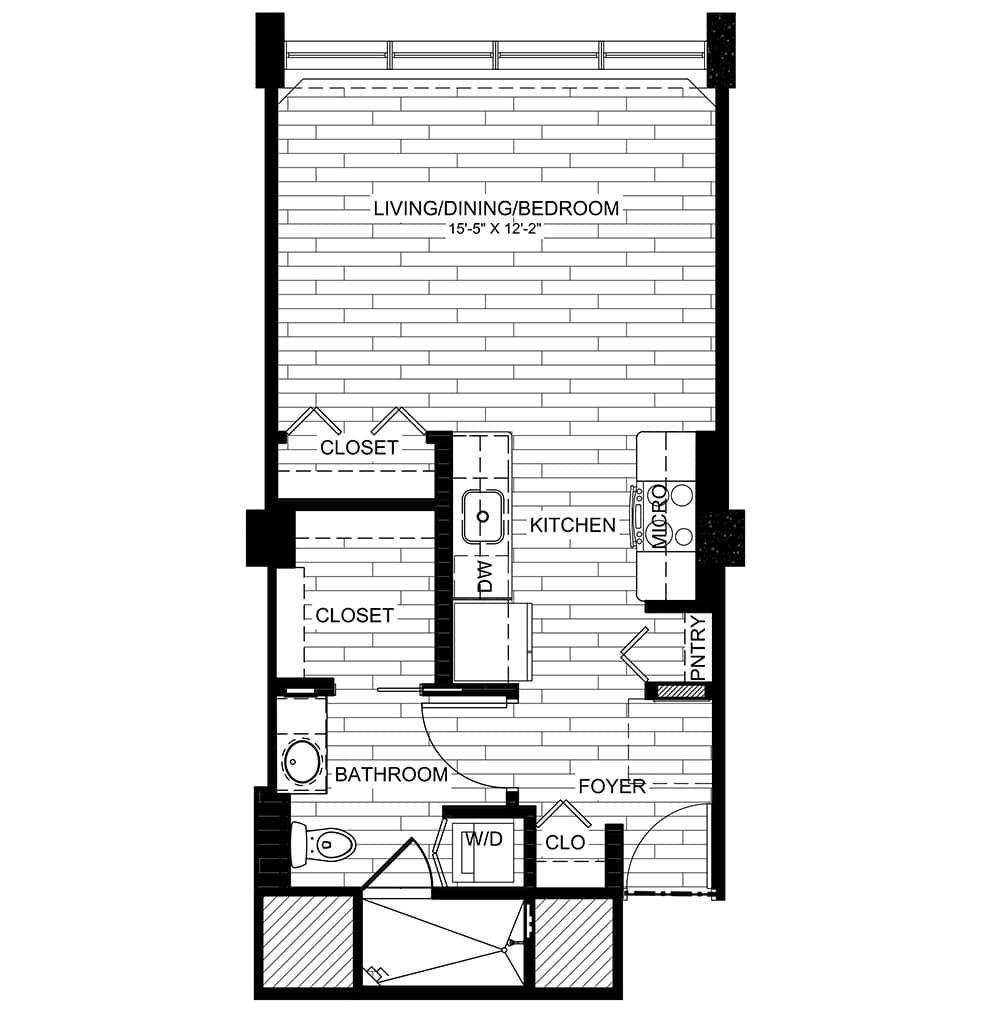 We offer three distinctive choices: studio, one bedroom, and two bedroom. Each option comes with a variety of layouts – take a look over each set we have available, and choose the one that best fits your needs.